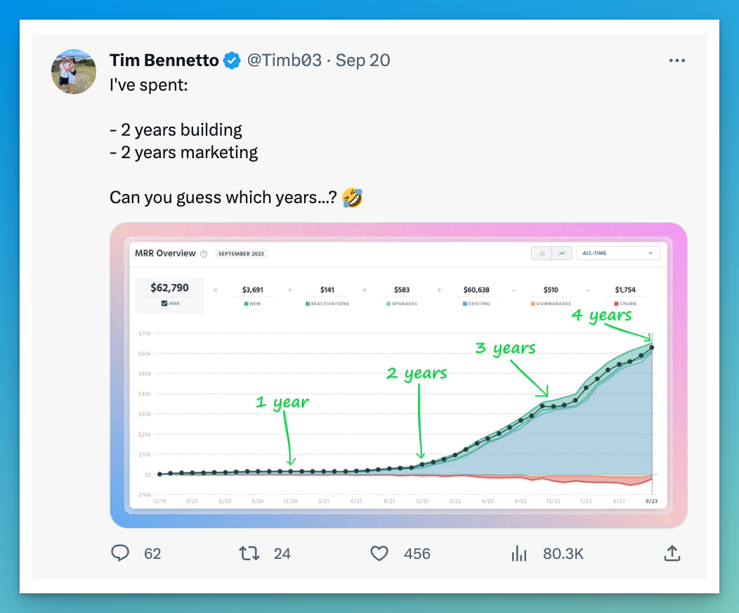 It would be easy to say that maybe Tim should have done marketing earlier. He even admits he probably should have and that there was wasted time building the wrong features.
