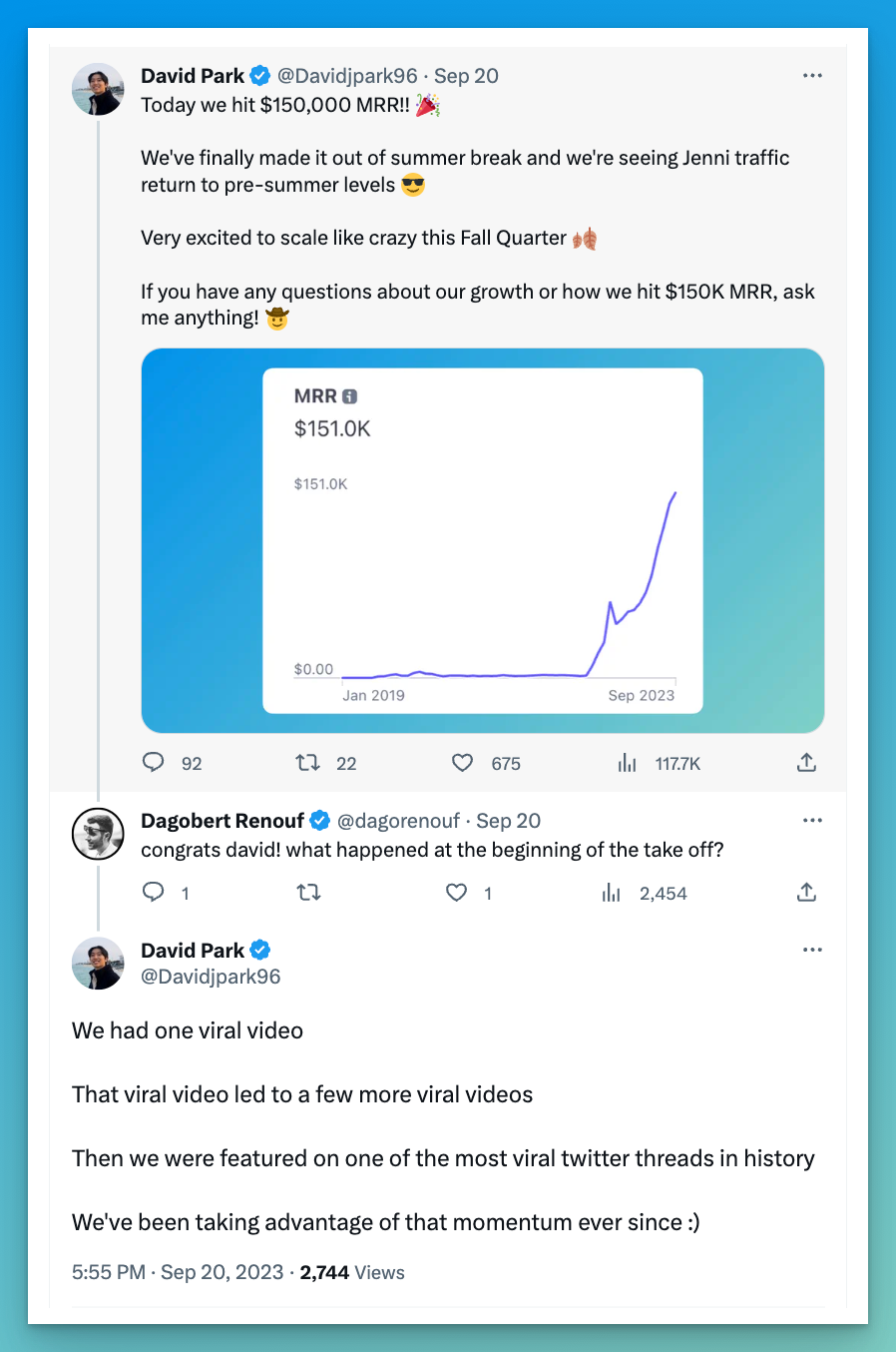 Then there are people like David Park. Various things happened along the way with Jenni (the business) which included a pivot to focus on academics, but a big reason theyâve taken off is by going viral.